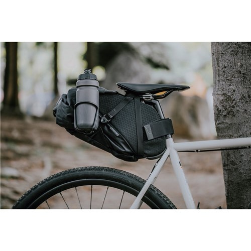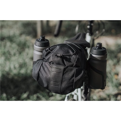 An anti-sway saddle mount holds rear bag rigid and keeps riding balanced for bikepacking enthusiasts. Made of aluminum alloy and stainless steel, stout and durable. The twin bars can hold two additional bottle cages for extra hydration needs.