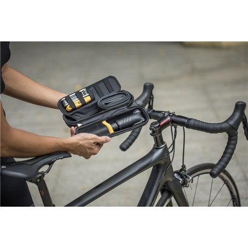 Large capacity bottle style tool pack mounts in water bottle cage. Internal mesh pocket and detachable organizer keeps gear neatly in place. Compatible with 29”/ 27.5”/ 26” MTB and 700c inner tubes and mini pumps less than 22cm long.