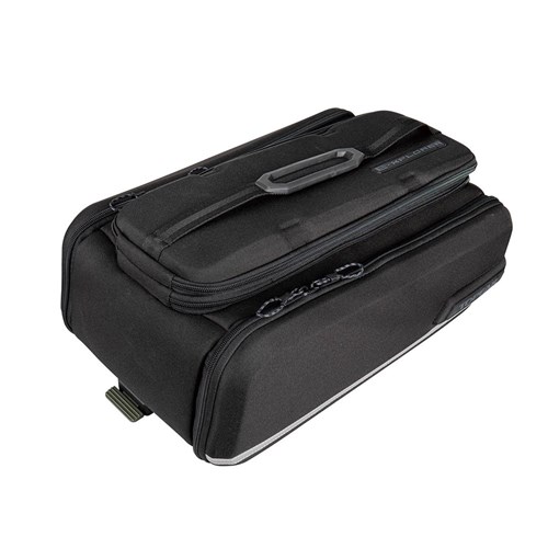 Built to go further! The E-Xplorer TrunkBag is an eBike specific spare battery carrier made of rigid EVA foam and Polyethylene providing structure, excellent impact absorption, and water repellency. In addition to the expandable top section, the side panels expand to full panniers maximizing capacity. The grip straps secure a spare battery in place while 3M™ reflective strips and attachable rear light MOLLEcompatible strap add extra safety. Compatible with Topeak’s MTX QuickTrack® 2.0 racks, there’s even enough room to carry additional gear for your eMTB adventures!