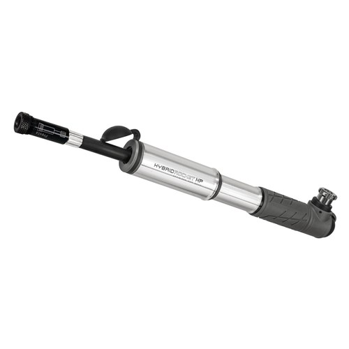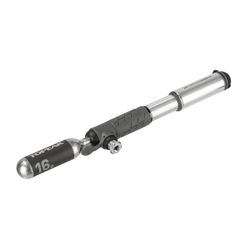 Road mini pump, CO2 inflator, or both. The choice is yours! HybridRocket technology combines the reliability of a mini pump with the rapid tire filling ability of a CO2 inflator in a single unit. Designed for the high performance road rider, the HybridRocket HP lets you quickly rejoin the group after fixing a flat. The mini-sized pump and integrated CO2 inflator lets you choose between pumping, inflating with CO2 or a combination of both. Its CNC aluminum barrel is optimized for high pressure and inflates up to 160 psi / 11 bar. An extendable hose with SmartHead® ThreadLock accepts Presta and Schrader valves. Note : Use the PCT Cap to tighten or remove two piece Presta valve cores when necessary. * Use only Topeak 16g CO2 cartridges.