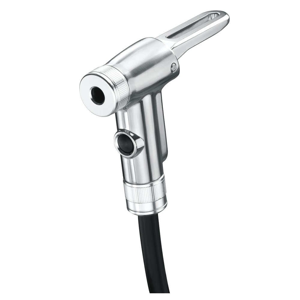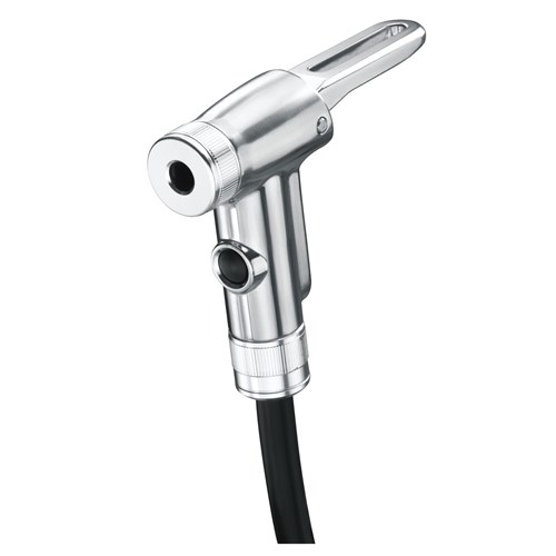TwinTurbo technology utilizes the pull and push of every stroke by transferring air between its two barrels. Pulling the handle up moves a massive amount of air volume from the larger barrel into the smaller barrel. Pushing the handle down compresses the air in the smaller barrel into high pressure output that fills road tires with high pressure, or MTB tires with large volume.