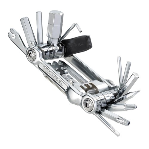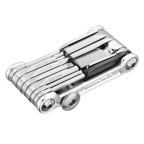 A precision full metal 23 function mini tool made to handle any road or trailside repair. T10 and T25 Torx wrenches simplify hydraulic disc brake work. Includes self-tightening tool and a neoprene bag. The perfect tool for endurance racing, training and touring.