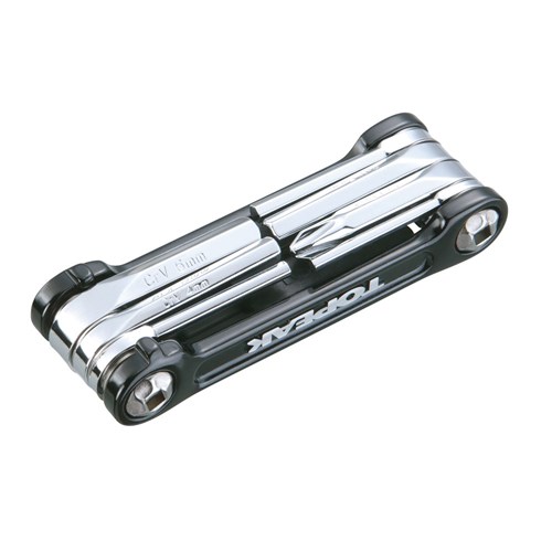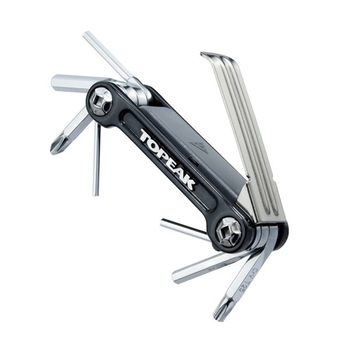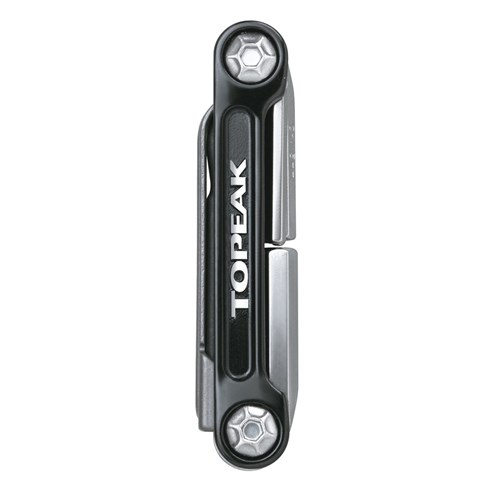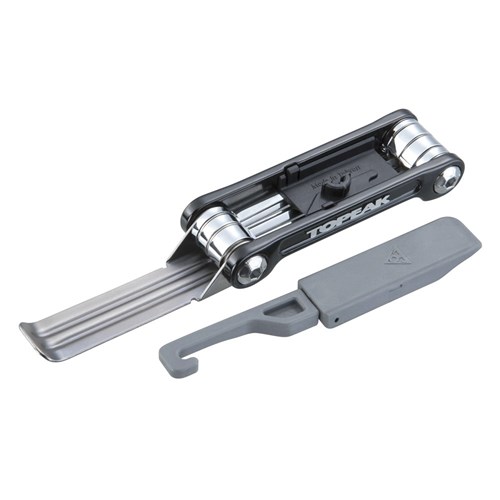 9 function pro quality tool folds in a sleek forged alloy body. An additional removable folding tire lever stores inside the tool body for a streamlined profile. Perfect for long road rides or endurance mountain biking. Includes a neoprene bag.