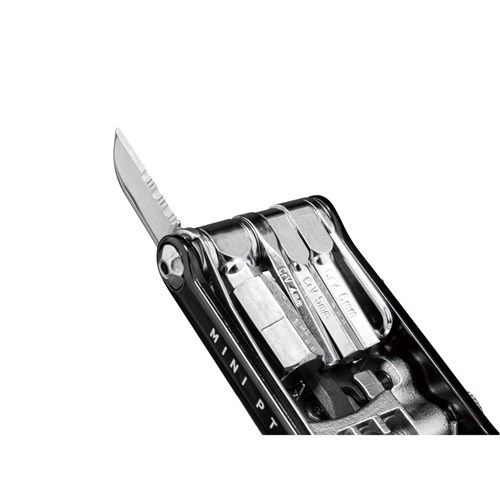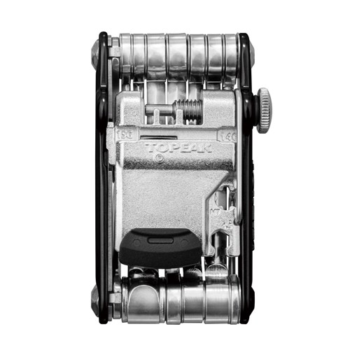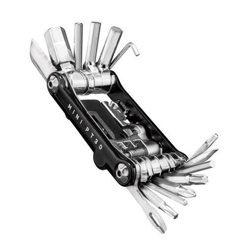 30 function, pro-quality, precision mini tool with integrated tubeless tire repair tools. Removable chain tool with built-in master link tool for removing and reinstalling master link type chains stores securely within the Mini PT30 body. Forged alloy body. Perfect for any road or trailside repair.