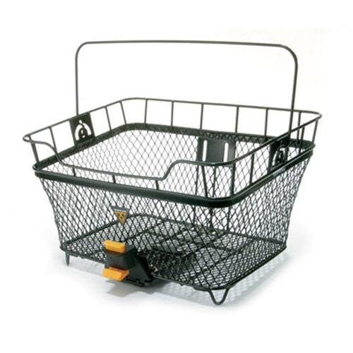 Metal basket mounts to rear rack with the MTX QuickTrack® system. Perfect size for shopping or other errands.