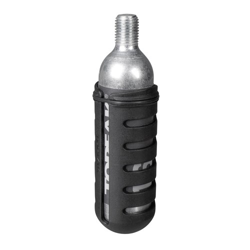An extremely compact, lightweight and easy-to-use CO2 inflator. Precision CNC machined aluminum inflator fits Presta and Schrader valves and works with threaded 16g or 25g cartridges. Simply screw the cartridge in tight and then screw the head onto the valve, unscrew the cartridge to release all the gas from the CO2 cartridge in seconds. Included CO2 Cartridge Shell protects your hands from cold cartridges during inflation.