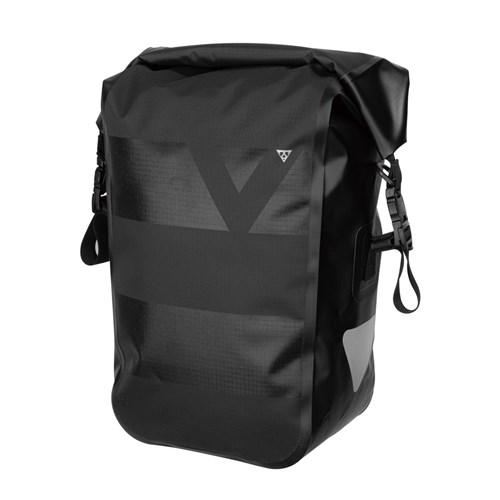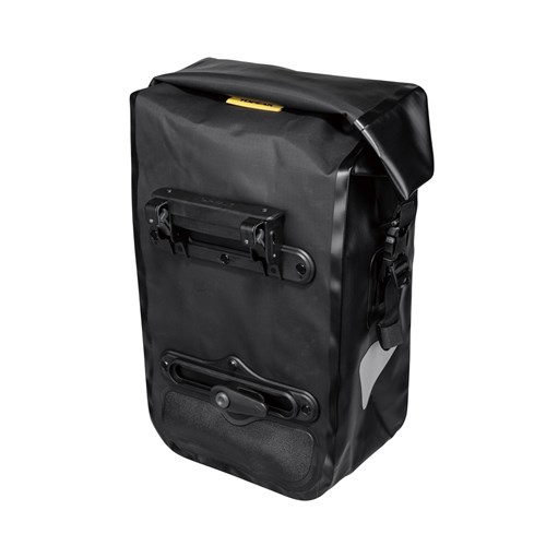 The new Pannier DryBag is constructed from a tough, sonically welded and seamed sealed waterproof material. A watertight roll-top closure provides maximum protection from trail dust, road spray and nasty wet weather. Our new Handle Loc system quickly and securely attaches the pannier to the rack and is quickly removed with a simple upward press & pull of the top mounted carry handle.
