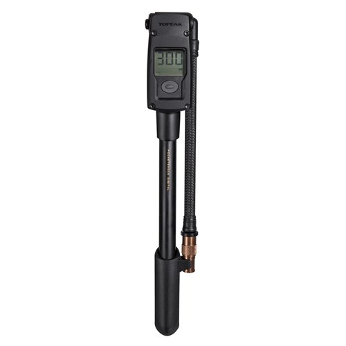 A compact shock pump with easy-to-read digital gauge delivering accurate pressure readings up to 300psi / 20.7bar. The Pressure-Rite connector and air release button make dialing in your pressure quick and easy, and there is no pressure loss when removing the connector while the rotating hose take stress off the valve stem when inflating.