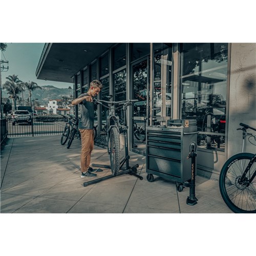 The PrepStand® eUP Pro is the first lift assisted foldable workstand – ideal for working on e-Bikes and other heavyweight bikes. Additional Reinforced Support Unit adds stability while a bike is mounted. The foot pedal operated, built-in pressurized cartridge provides an additional 17kg (37lb) of lifting power making easy work of raising and lowering most bikes weighing up to 35kg (77lb). A 360º rotatable clamp head with non-marring jaws quickly and securely holds your bike stable for repairs, cleaning and general maintenance. Quick release legs conveniently fold to a compact size for travel and storage.