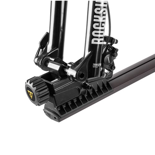 A compact and lightweight foldable workstand with unique 4-way adjustment and solid base for home shop, race day or events. Accepts QR type or thru-axles type fork dropouts without switching parts.