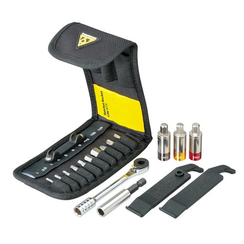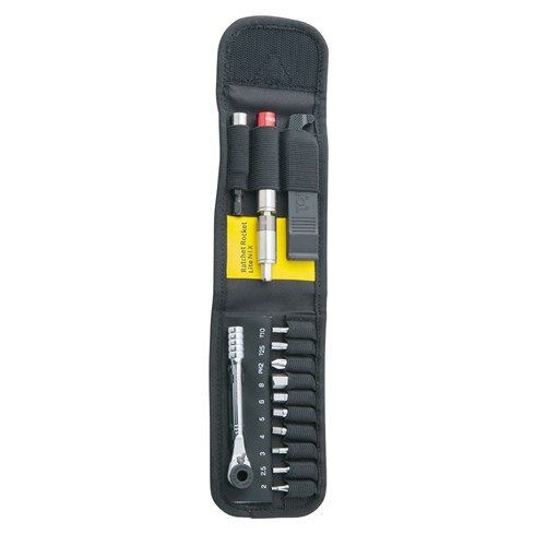 The only thing missing is the kitchen sink! The Topeak Ratchet Rocket Lite NTX has everything you need to fix and make precise adjustments to your bike while on the road. Featuring a fine tooth ratchet mechanism with reverse lever and thumb wheel with Nano TorqBits for ease and torque accuracy in tight spots. Includes magnetic bit holder, hardened steel tools in 2, 2.5, 3, 4, 5, 6 and 8mm hex, T10, T15, T25 Torx®, #2 Phillips bits and two engineering grade polymer tire levers. The protective case keeps things organized and secure, and even has a pocket to carry glueless patches.