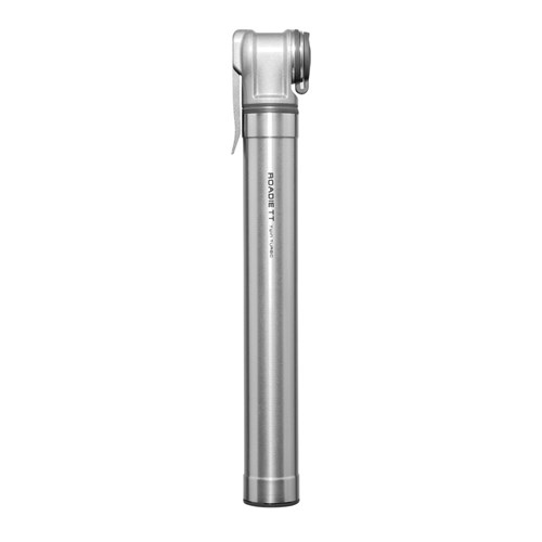 The Roadie TT Twin Turbo is a full metal, pocket sized mini pump that transfers larger air volume from a bigger diameter outer chamber into a smaller diameter inner chamber to deliver more air at higher pressures to fill tires 50% faster and easier. Integrated dust cap keeps pump head clean and thumb lock lever ensures an air-tight seal.