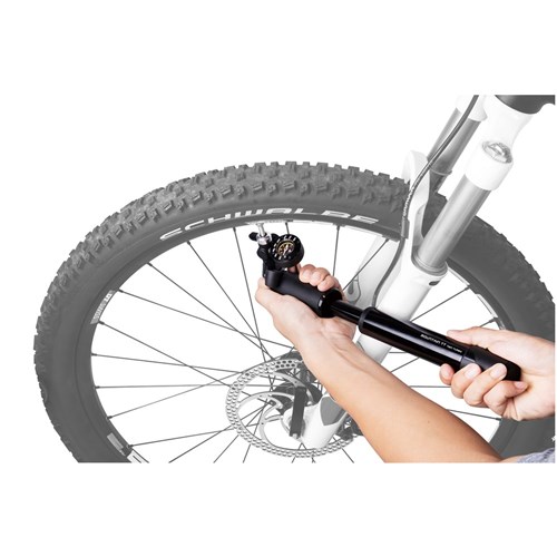 This mini sized gauge can be attached between the pump and valve to read pressures while pumping or used alone. Provides pressure readings up to 160 psi / 11 bar. Rotating gauge is easy to read and the head works with Presta, Schrader or Dunlop* valves on bikes / motorcycles / car tires, forks or shocks while the Thumb Lock lever ensures an airtight seal. An air release button allows fine tuning of pressure.
