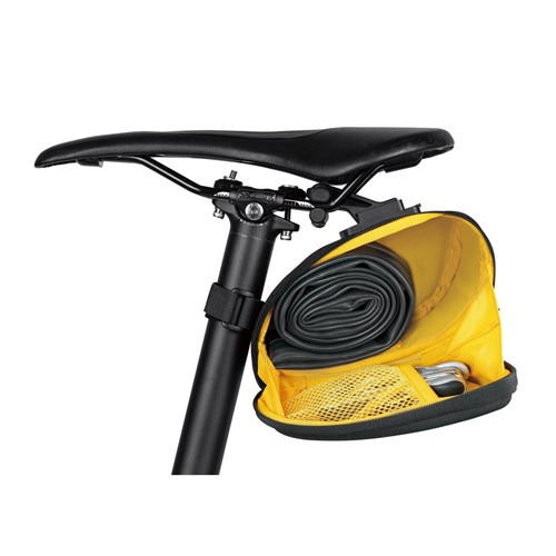 A new idea in wedge pack construction combines molded side panels with flexible 600 denier fabric to form semi rigid, weather resistant saddle bag. A large, side-opening panel provides easy access to all your under saddle gear. Internal mesh pockets keep keys and small tools in place while riding. QuickClick® compatible for fast, easy transfer between bikes.