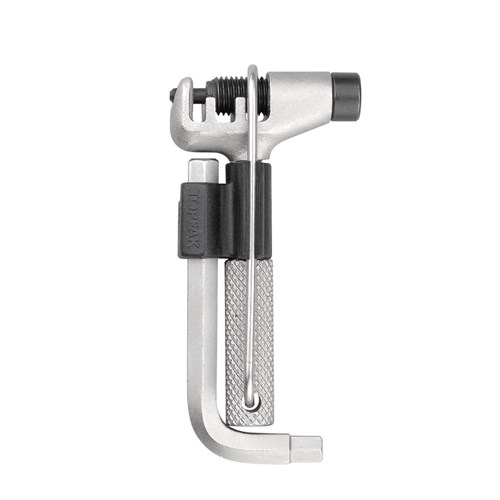 High quality chain tool for single and multi-speed chains up to 12 speed. Contains 5 and 6 mm Allen wrenches, and chain hook.