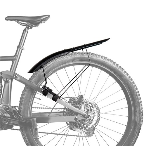 The perfect quick-mount rear fender system attaches to MTB with hook and loop straps easily and securely. Adjustable fender length provides a closer fit to the tire and excellent mud/spray protection. Unique two-piece, dual tone design provides short or longer fender usage options for a perfect fit with your bike. A highly polished underside helps prevent dirt buildup and aids in cleaning.