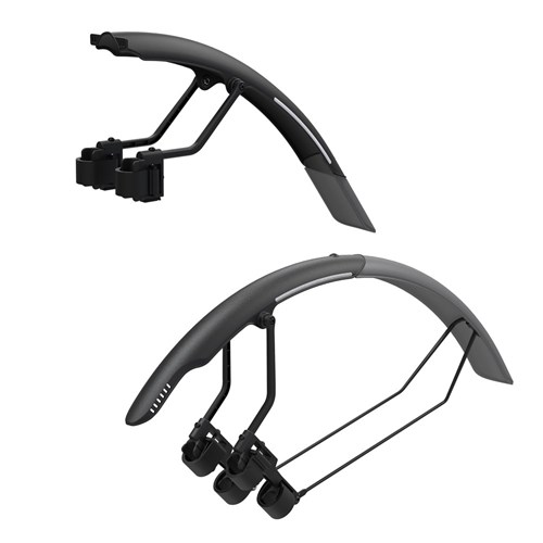 The perfect quick-mount, dual color rear fender that attaches to road bike frames with hook and loop straps easily and securely. Adjustable front struts provide a closer fit to the tire and excellent mud / spray protection. Unique two-piece, dual tone design provides short or longer fender usage options for a precise fit with your bike. A highly polished underside helps prevent dirt buildup and aids in cleaning. Included 3M reflective decals provide safety at night.
