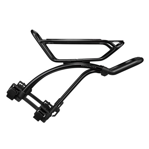 The perfect quick-mount rear rack system attaches to MTB full suspension seatstays or hardtail MTB without rack eyelets. This one-size-fits-all rear rack features an innovative top plate that adjusts to level independent of the seatstay angle. Integrated QuickTrack® system allows Topeak TrunkBags to slide and lock into place and release with a the push of a button. Innovative hook and loop strap mounting system cinches down tight to keep the load stable and allow mounting on a wide range of bikes. Also compatible with KLICKfix® / RackTime® Snapit 1.0 or Vario system bags.