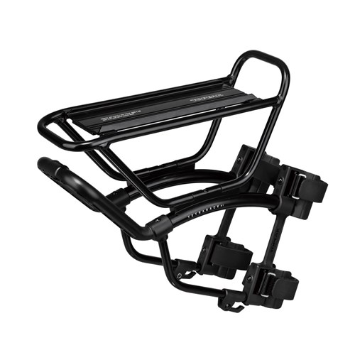The perfect quick-mount front rack system for road, cross, hybrid or touring bikes with rigid forks. This one-size-fits-all front rack features an innovative top plate that adjusts to level independent the fork angle. Integrated QuickTrack® system allows Topeak TrunkBags to slide and lock into place and release with a the push of a button. Innovative hook and loop strap mounting system cinches down tight to keep the load stable and allow mounting on a wide range of bikes.