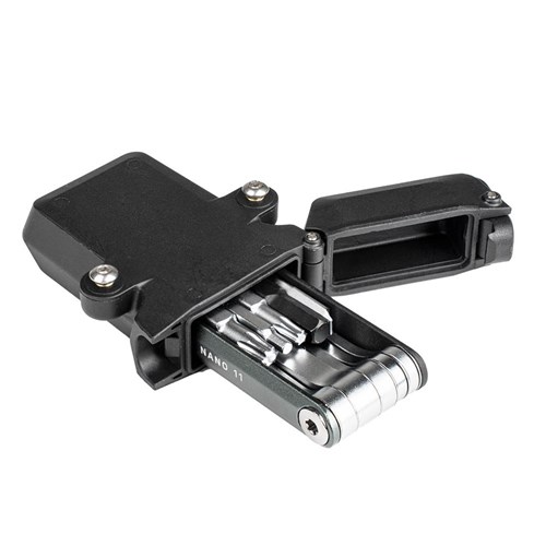The toolbox specifically designed for the DUALSIDE CAGE PRO is compact in size and can be installed on your preferred side.. It includes a set of Nano 11 mini tools, making it the ideal choice for bikes with limited space on the frame.