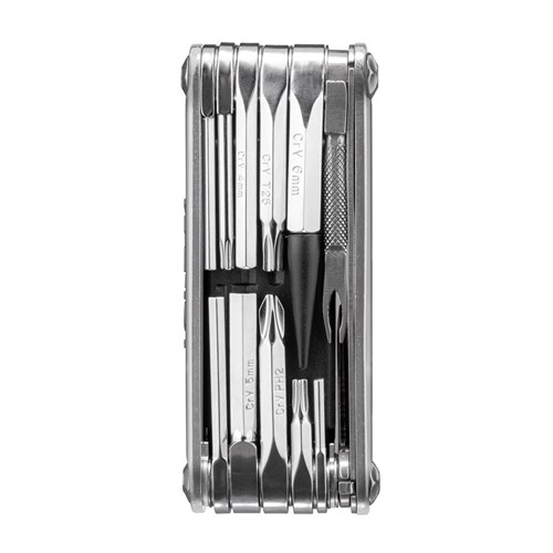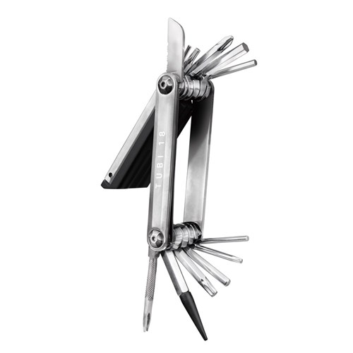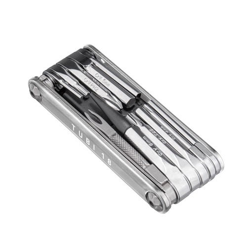 18 function, pro-quality, precision mini tool with integrated tubeless tire repair functions. Tubeless repair tools and tire repair plug compartment store inside the tool body for a streamlined profile. Perfect for any road or trailside repair.