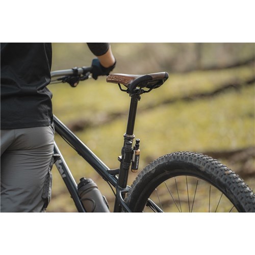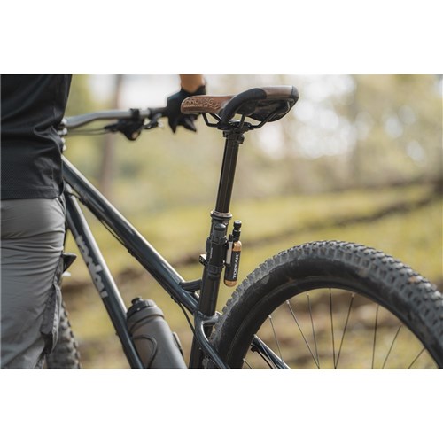 A complete tubeless tire repair / CO2 inflation kit for mountain bikes. Tubeless repair tools are integrated into the pod end caps that feature knurled surfaces delivering extra grip when repairing tires. Included three tire plugs store inside a machined alloy pod, knife with holder and a Nano AirBooster with 25g CO2 cartridge secures to a mounting module that can be strapped to a frame tube or seatpost.