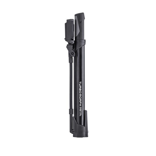 Advancing the award winning Morph® with high tech - Introducing the Turbo Morph® Digital. Top-mounted flip-down digital gauge makes reading pressure easy and provides accurate tire pressure up to 160 psi / 11 bar. The fold-out footpeg and flexible hose provides excellent stability for more efficient pumping.
