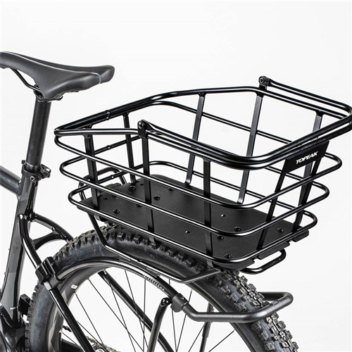 A minimalist design aluminum basket is compatible with the Topeak® MTX QuickTrack® 2.0 quick-release system, as well as the MIK® and Racktime® series rack bases.Fits rear racks.