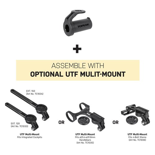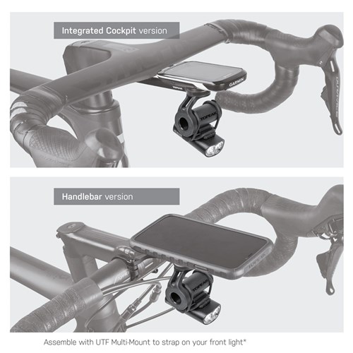 Simply assemble the Light Bar to Topeak UTF Multi-Mount (Integrated Cockpits, Handlebar, or 4-Bolt Stem version) to strap on your front light under your mounted smartphone or cycle computer for lighting your way home after dark.
