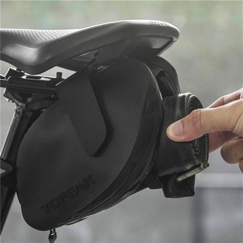 Aerodynamic water-repellent lightweight saddle bag with a unique center opening for easy access to tool, tube and other essentials. Fits neatly under saddle with hook & loop straps.