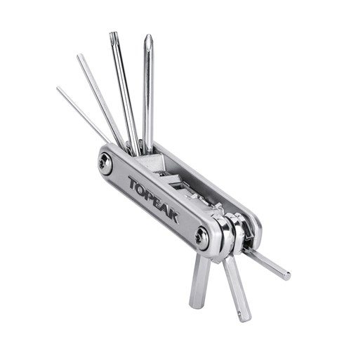 11 function folding tool that can easily handle most repairs. Perfect for everyday cycling. Updated design to secure 8 mm hex tool bit. Included a self-tightening T20 / 2.5mm L-type wrench.
