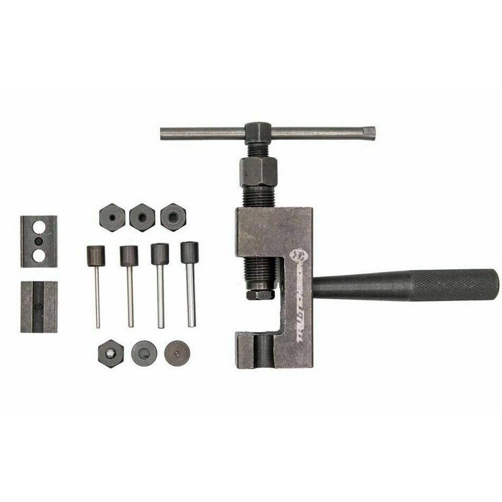 Using a hardened steel design, Link Monkey is manufactured to the highest standard for durability. Designed as an all-in-one product to split a chain, press fit connecting link plates and rivet pin heads. Suitable for use on “X” and “O” ring chains from sizes 420 to 530, covering most road and off-road manufacturer motorcycle chain sizes.