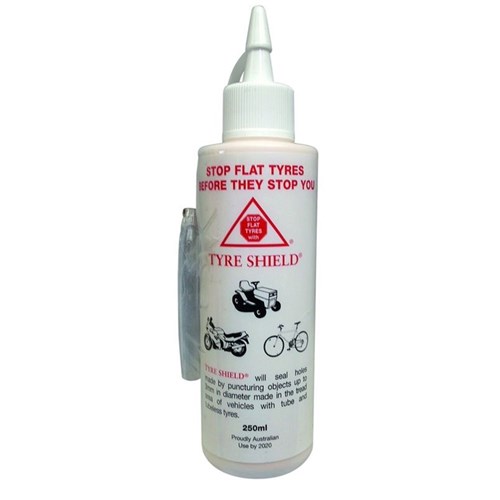 TYRE SHIELD ® is a puncture preventative that seals holes in both tube type and tubeless tyres caused by puncturing objects up to 6mm in diameter which appear in the tread area of the tyre and 3mm in tube type tyres as the vehicle is being driven.