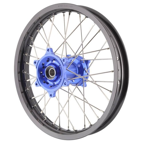REAR WHEEL. 2.15X18 BLACK RIM / BLUE HUB / SILVER SPOKES.