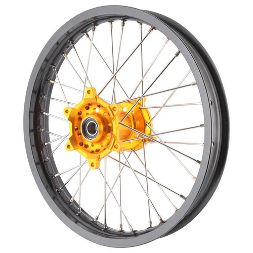 REAR WHEEL. 2.15X19 BLACK RIM / RED HUB / BLACK SPOKES