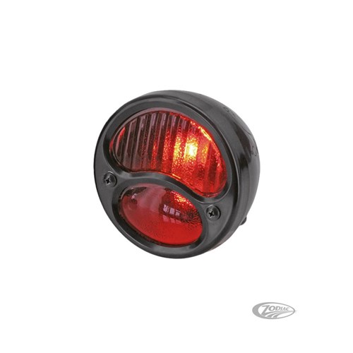 FEATURES ONE BULB FOR TAILLIGHT AND LICENSE PLATE ILLUMINATION, AND ANOTHER BULB FOR BRAKE LIGHT. COMES PRE-WIRED.