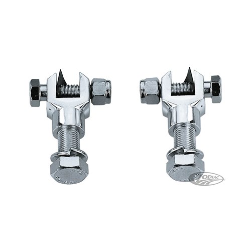 These universal clevis sets may be used to mount most Original Equipment or after-market foot pegs with male shanks.