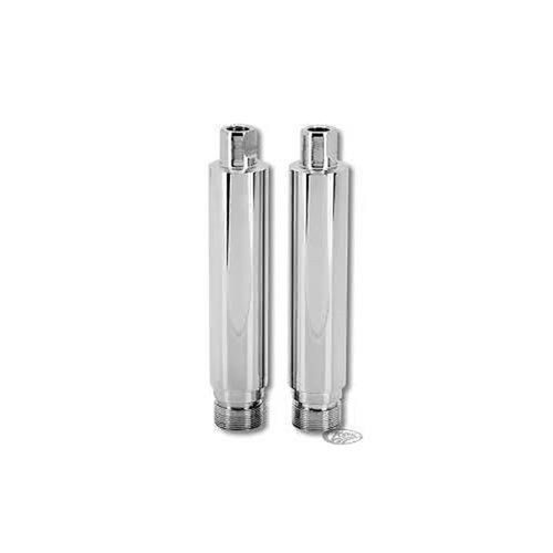 Now you can get a longer front fork without having to install longer inner fork tubes. These fork tube extensions replace the stock fork tube caps and are made from solid, hi-grade steel with a chrome finish. Available for most 39, 41 and 49mm applications in 2" (5 cm), 4" (10 cm) and 6" (15 cm) length. Most bikes can use 2" or 4" extensions without the need for longer brake lines, 6" extensions however must always be installed with longer brake lines. Fork tube extensions are sold in pairs.