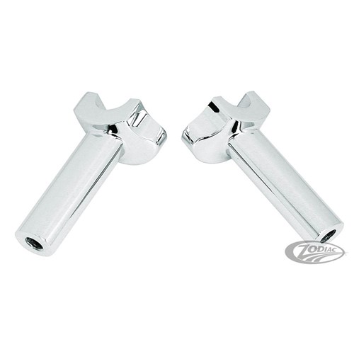 Chrome plated replicas of the FXWG style risers with 41/2" (11.5 cm) rise. Can be used as OEM replacement or Custom applications. Use in combination with any of our show-chromed handlebar clamps.