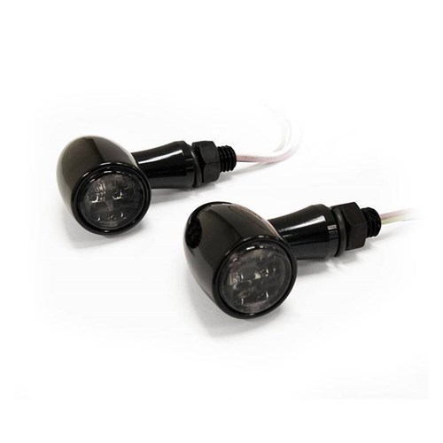 Billet aluminium LED lights that are only 2 cm diameter and 3.7 cm wide & long have M8 mounting studs. Available as turn signals and turn/tail/brake combination lights and are E approved. Sold in sets of 2.