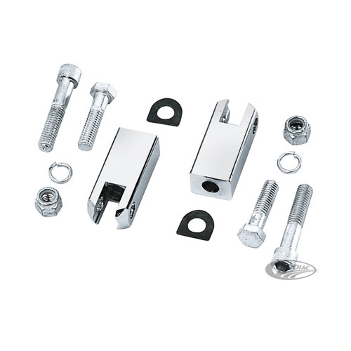 Replacement chrome passenger peg mounts for all 1983-2003 Sportsters. Sold in pairs (OEM 50610-86T).