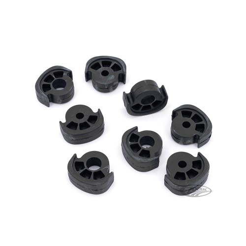 ISO-PEG foot pegs, also known as footrests, feature unique soft rubber pads to reduce vibrations. These rubbers are cat paw shaped and isoelastic mounted on a chrome socket head screw and yoke stem. These footrests have steel inserts and are stronger than most the same looking pegs on the market but still cannot be used as a kickstart pedal.