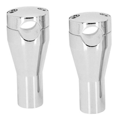 Round top billet aluminium riser set. Available in both show chromed and polished finish. 3 different lengths to choose from, 4" (10 cm), 6" (15 cm) and 8" (20 cm) rise.