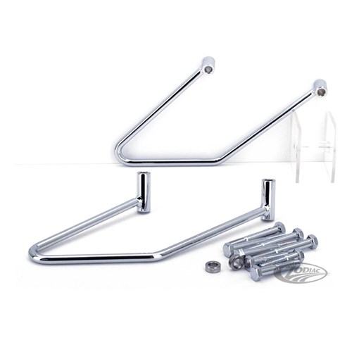 Leather saddlebags are more than just an accessory, for travellers it's a necessity. Take care that bags do not come into contact with rear shocks or callipers as this may result in damaged bags, chrome or paint. Zodiac has three different styles available, quick removable Zip-Off, Slim-Lines and Wide- Bodies. All three style supports have a perfect chrome finish.