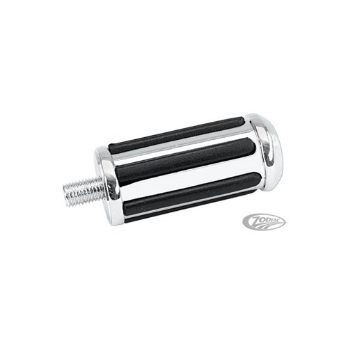 Streamliner foot pegs, also known as footrests, feature a thick one-piece rubber inside to absorb vibration and are covered by a sleeved chrome plated cover to add a touch of class to your bike. These Genuine Zodiac pegs are stronger than most the same looking pegs on the market. A matching style kickstart pedal is also available.