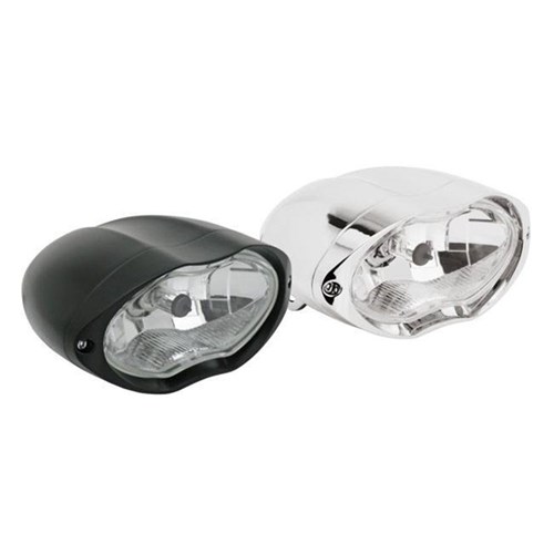 There are many headlights, but none of them have the fierce styling as the Sun Ray. Headlight is 7 1/2" (19 cm) wide, 3 5/8" (9.3 cm) high and 7 1/4" (18.5 cm) long. Has a clear DOT approved lens and diamond cut reflector and comes pre-wired and with a 12 Volt 55/60-Watt Halogen bulb installed.