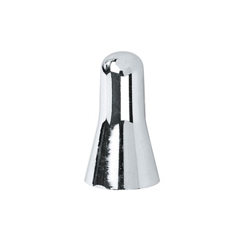 Chrome plated flared cover screws over the rubber stem of most inner tubes.